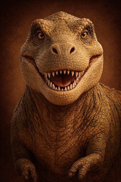 Bestelle das digitale Kunst Bild Freundlicher T-Rex – Dino-Porträt von Studio Mini Kids als Reproduktion auf Leinwand, Alu-Dibond, als Poster, Fototapete oder Acrylglasbild.