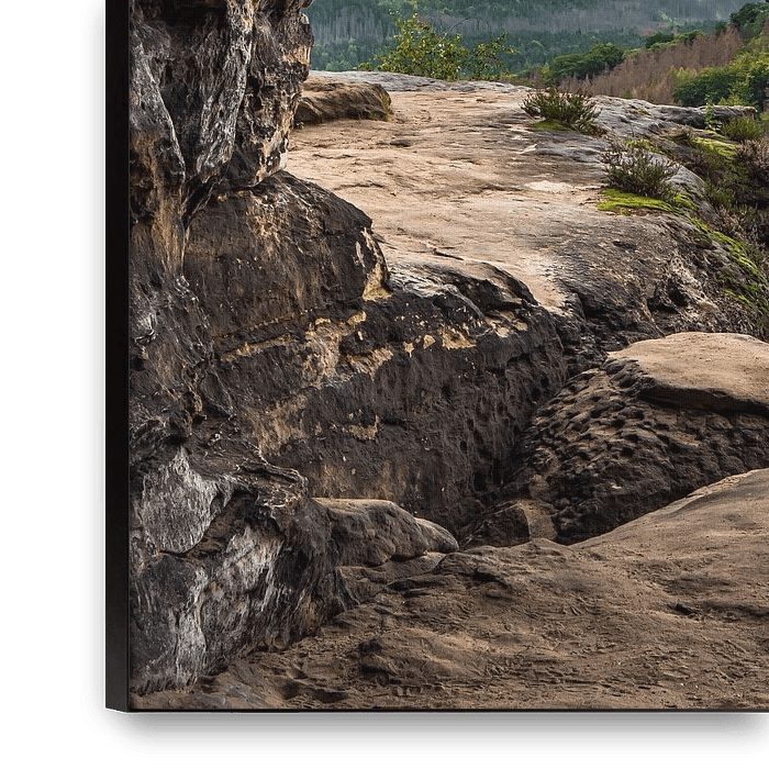 Bestelle das Foto Frienstein, Sächsische Schweiz - Idagrotte und Lorenzsteine von Pixelwerk als Reproduktion auf Leinwand, Alu-Dibond, als Poster, Fototapete oder Acrylglasbild.