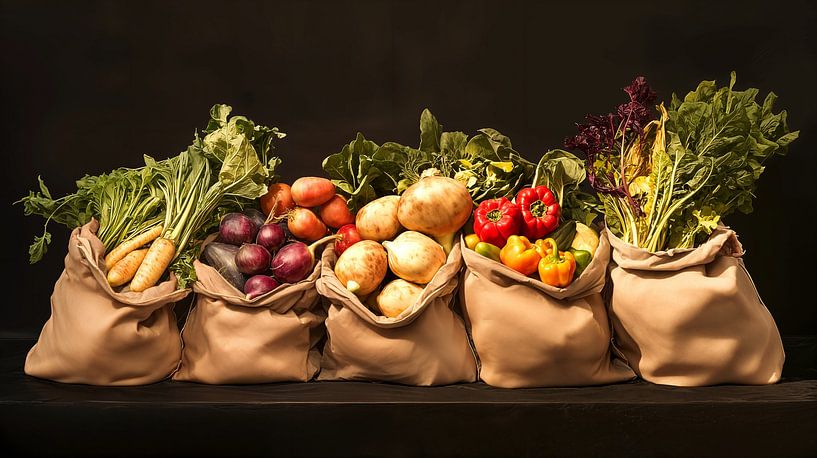 Tüten gefüllt mit frischem Gemüse, direkt vom Land.