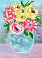 Bestelle dieses Blumen-Wandbild Fröhliche Blumen in der Vase von Jasmine Goodwin als Kunstdruck auf Leinwand, Alu-Dibond, als Poster, Fototapete oder Acrylglasbild.