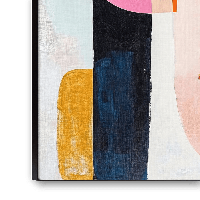Merry Art | Modern Planes - Dieses abstrakte Gemälde besteht aus einfachen, großen Farbflächen in Orange, Lila, Türkis, Pink und Schwarz, die ihm einen modernen und verspielten Look verleihen.