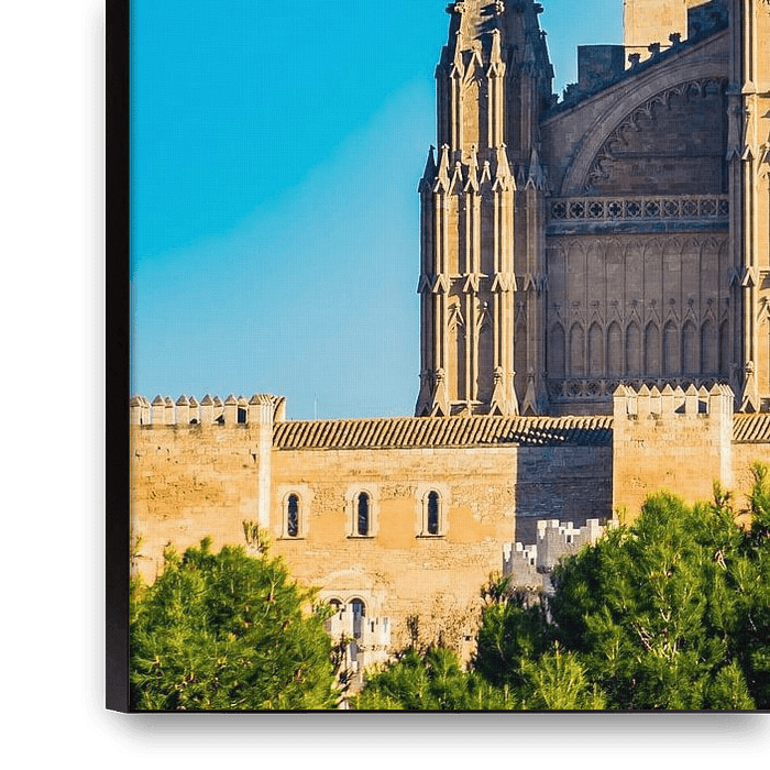 Bestelle das Foto Frontansicht der berühmten Kathedrale von Palma de Mallorca, Spanien von Alex Winter als Reproduktion auf Leinwand, Alu-Dibond, als Poster, Fototapete oder Acrylglasbild.