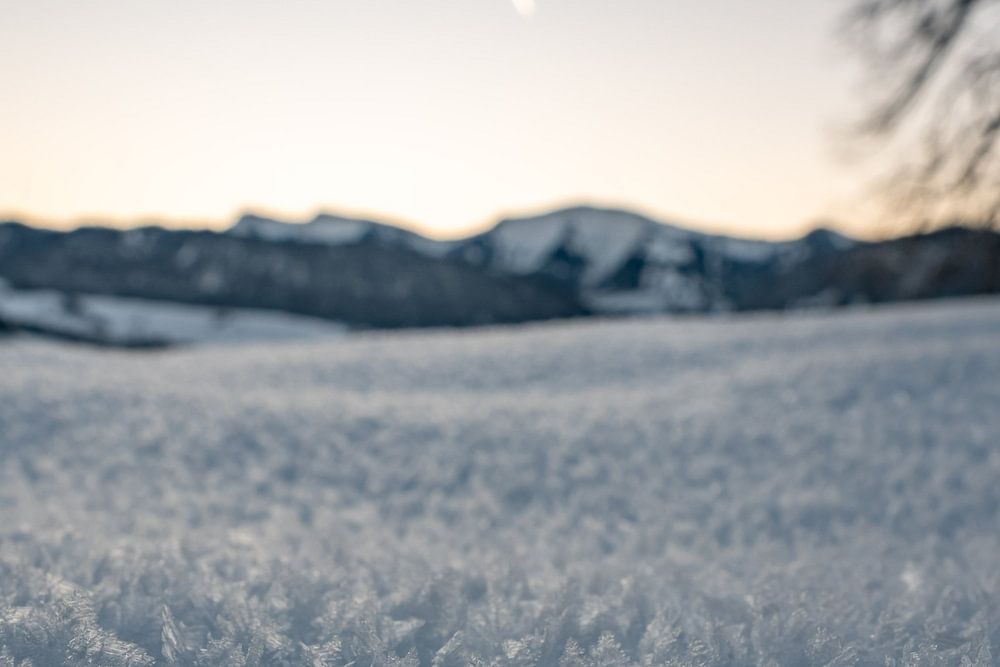 Frostiger Morgen in Oberstaufen mit Blick auf den Hochgrat