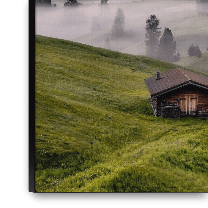 Bestelle dieses Landschafts-Wandbild Frühlingsmorgen auf der Seiser Alm in Südtirol von Achim Thomae Photography als Reproduktion auf Leinwand, Alu-Dibond, als Poster, Fototapete oder Acrylglasbild.