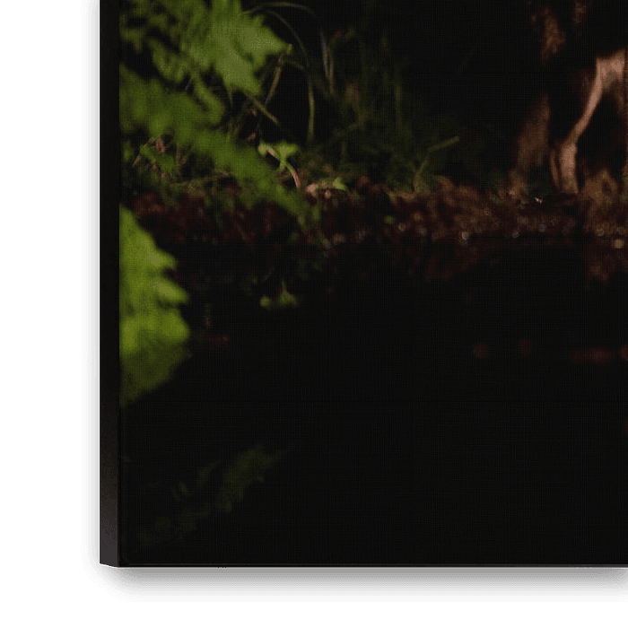 Fuchs, der nachts ins Wasser kommt, mit Spiegelung im Wasser.