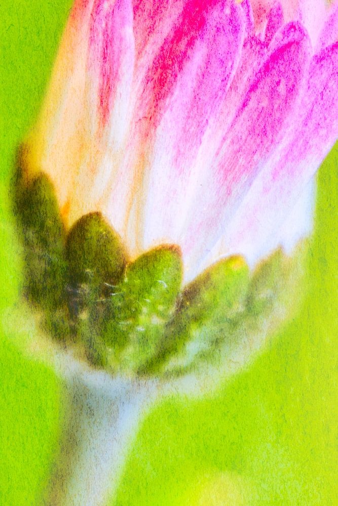 Bestelle dieses Blumen-Wandbild Gänseblümchen in der Knospe 1 malerisch von Jaap Tanis als Kunstdruck auf Leinwand, Alu-Dibond, als Poster, Fototapete oder Acrylglasbild.