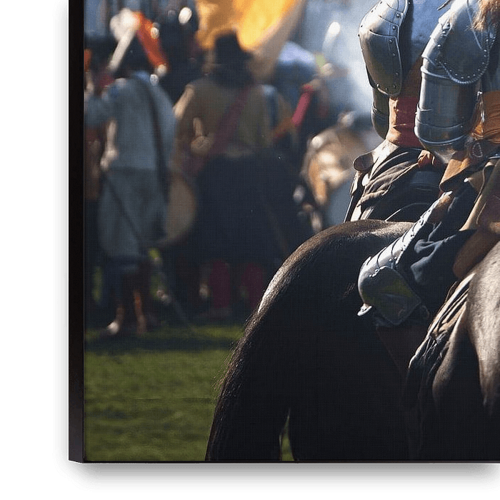 Bestelle das Foto Galoppierende Ritter zu Pferd auf dem mittelalterlichen niederländischen Schlachtfeld von Fotografiecor .nl als Reproduktion auf Leinwand, Alu-Dibond, als Poster, Fototapete oder Acrylglasbild.