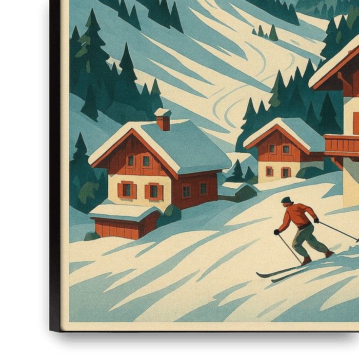 Bestelle dieses Landschafts-Wandbild Garmisch-Partenkirchen Reiseplakat - Vintage Skigebiet Kunst von Travel Shop als Reproduktion auf Leinwand, Alu-Dibond, als Poster, Fototapete oder Acrylglasbild.