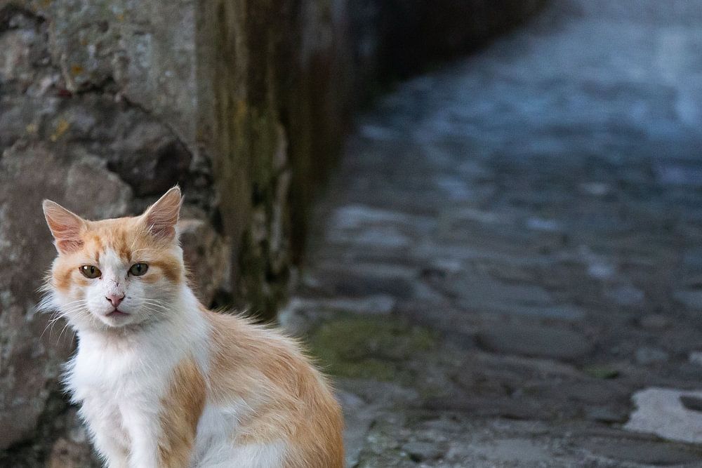 In einem ruhigen italienischen Dorf in der Toskana haben die Katzen bei Sonnenuntergang ein Auge auf das Geschehen.