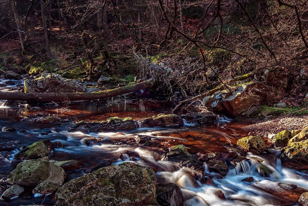 In den Ardennen fließen mehrere Gebirgsflüsse, darunter der Ninglinspo und die Hoëgne, die durch Regenwasser gespeist werden, durch eine Gerölllandschaft und verleihen dem Ganzen einen prähistorischen Charakter. Die schönste Zeit ist der Herbst, wenn die Blätter ihre Farben intensivieren und mehr Sonnenlicht den Boden erreicht. Die Verwendung eines Neutraldichtefilters für eine lange Belichtungszeit lässt das Wasser cremig aussehen.