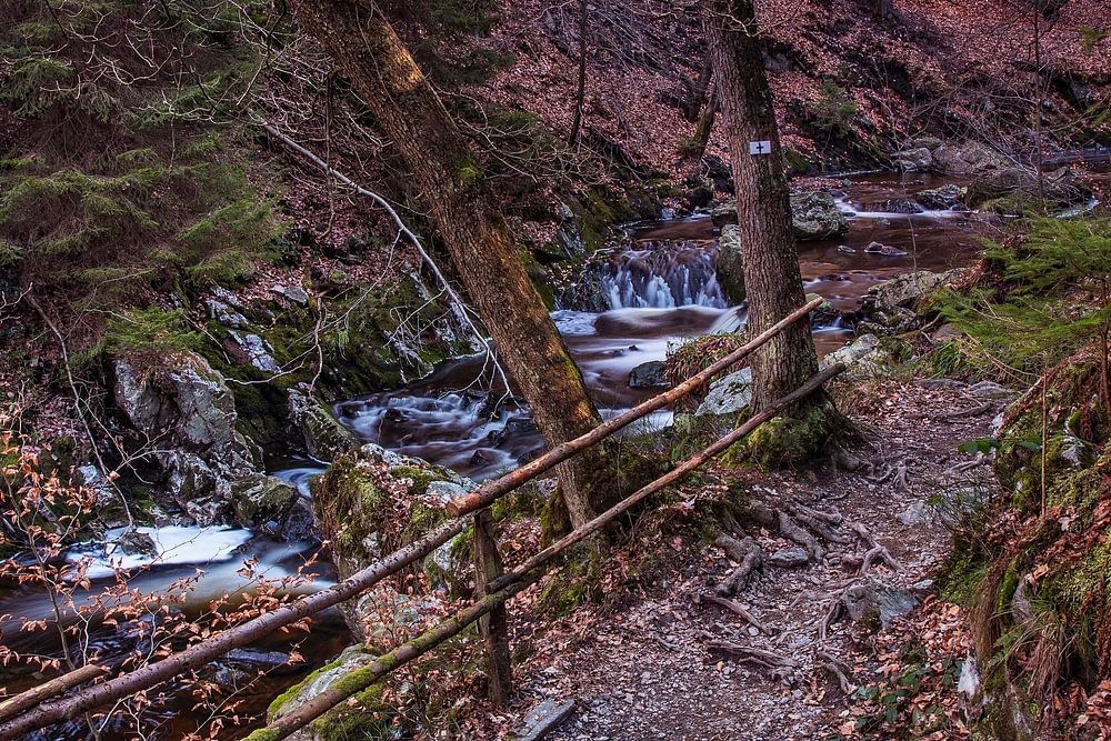 In den Ardennen fließen mehrere Gebirgsflüsse, darunter der Ninglinspo und die Hoëgne, die durch Regenwasser gespeist werden, durch eine Gerölllandschaft und verleihen dem Ganzen einen prähistorischen Charakter. Die schönste Zeit ist der Herbst, wenn die Blätter ihre Farben intensivieren und mehr Sonnenlicht den Boden erreicht. Die Verwendung eines Neutraldichtefilters für eine lange Belichtungszeit lässt das Wasser cremig aussehen.