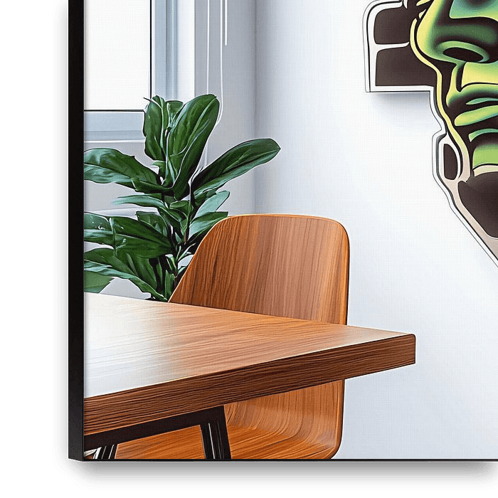 Ihre gewählte Kunst auf Leinwand, gespannt in einem Aluminiumrahmen. Schnell und einfach austauschbar für eine frische Ausstrahlung und ganz nach Ihren Wünschen.