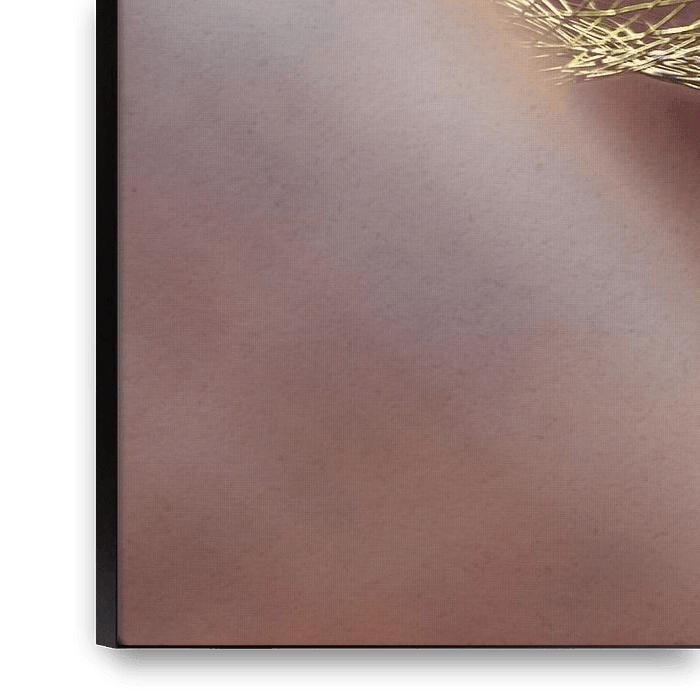 Dieses Werk zeigt eine abstrakte Nahaufnahme eines zarten, durchscheinenden Stoffes, überlagert von einem feinen goldenen Netz. Die weichen Faltungen des Stoffes und die filigrane Struktur des Meshs erzeugen ein spannungsreiches Spiel aus Licht, Schatten und Textur. Die Inspiration für dieses Bild war das Zusammenspiel von organischer…