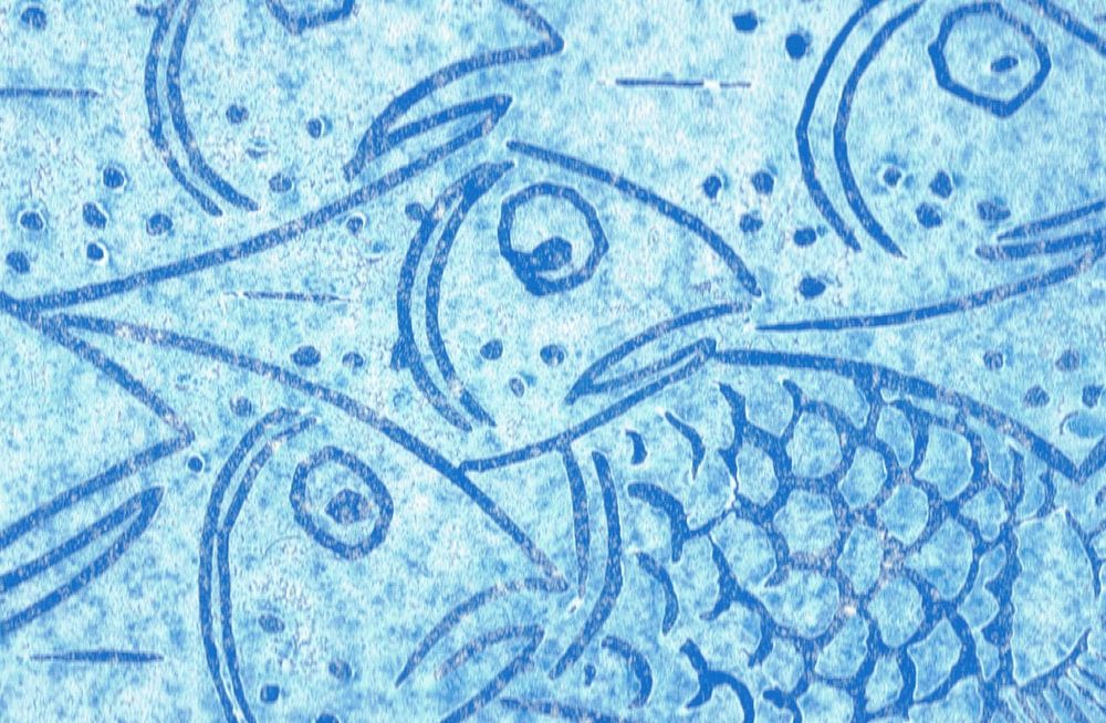 Bestelle diese Malerei Gegen den Strom 2, Linolschnitt von Matthias Bertram als Reproduktion auf Leinwand, Alu-Dibond, als Poster, Fototapete oder Acrylglasbild.