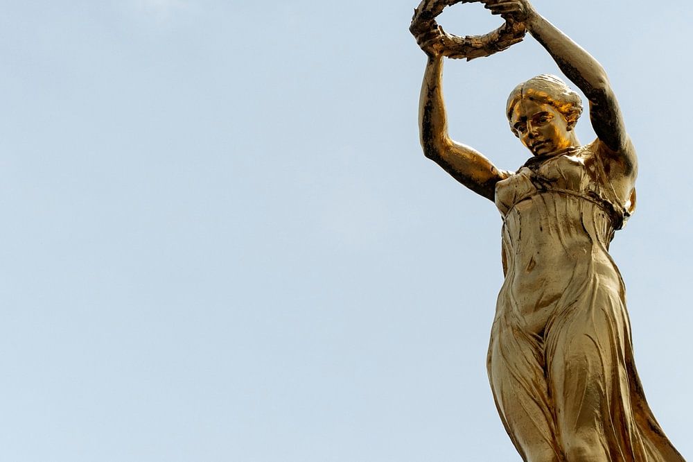 Luxemburg Juni 2025Denkmal der Erinnerung (französisch: Monument du souvenir), meist bekannt unter dem Spitznamen Gëlle Fra (luxemburgisch für "Goldene Dame") Place de la Constitution.Kriegsdenkmal,