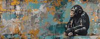 Details: Schimpanse, abstrakt, orange, blau, grau, schwarz, Wildtiere, Wandkunst, Tier, Portrait