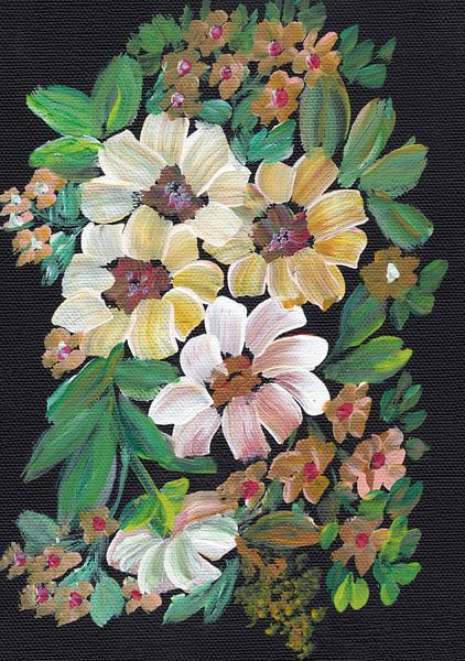 Bestelle dieses Blumen-Wandbild Gemalte Blumen und Blätter von Nikita Jariwala als Reproduktion auf Leinwand, Alu-Dibond, als Poster, Fototapete oder Acrylglasbild.