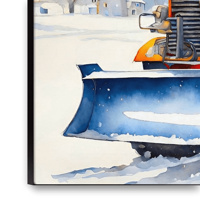 Bestelle das digitale Kunst Bild Gemütliche Dame auf dem Schneepflug von De gezellige Dames als Reproduktion auf Leinwand, Alu-Dibond, als Poster, Fototapete oder Acrylglasbild.