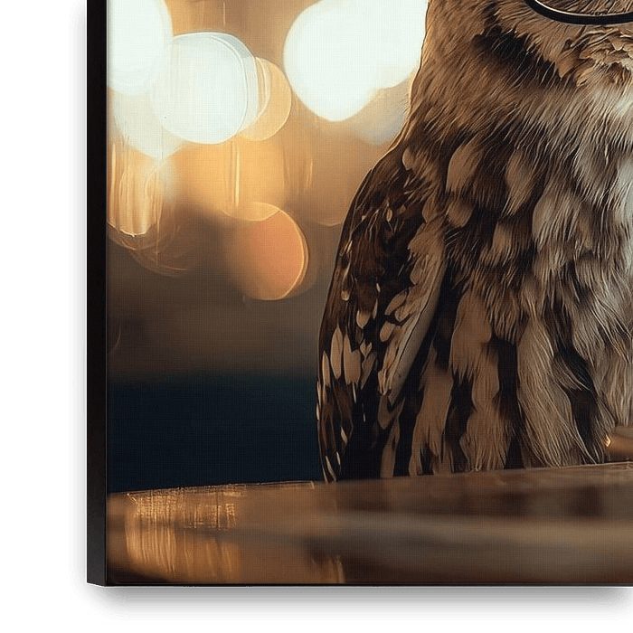 Bestelle dieses Vögel Wandbild Gemütliche Nachteule im Cafe von Matthias Hauser als Reproduktion auf Leinwand, Alu-Dibond, als Poster, Fototapete, ArtFrame oder Acrylglasbild, maßgefertigt in höchster Qualität.