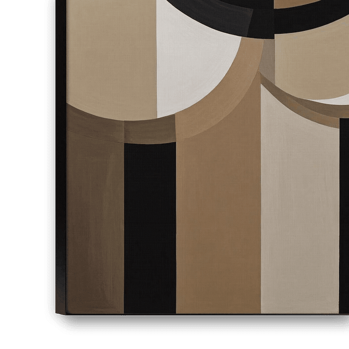 Dieses Stück bringt die Ruhe und Schlichtheit des Minimalismus in Ihren Raum. Die weiche Farbpalette aus Beige und Braun strahlt Tiefe und Wärme aus. Die geometrischen Formen - Kreise, die ineinander übergehen, und klare Linien, die die Leinwand durchziehen - spielen mit Wahrnehmung und Raum. Dieses Kunstwerk eignet sich perfekt für moderne Innenräume, die sich nach einem Hauch von dezenter Klasse sehnen. Hängen Sie es in Ihrem Wohnzimmer oder Büro auf und lassen Sie Ihre Gäste die subtile Komplexität bewundern, die dennoch eine Oase der Ruhe bietet.