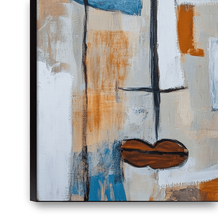 Ein faszinierendes Spiel aus Farben und Formen, diese abstrahierte Gesichtsdarstellung zieht den Betrachter in ihren Bann. Mit sanften Blautönen und erdigen Akzenten vermittelt das Kunstwerk eine mysteriöse Aura. Ideal für das Wohnzimmer, wo es Gespräche anregen und die Atmosphäre kreativ anheben kann.
