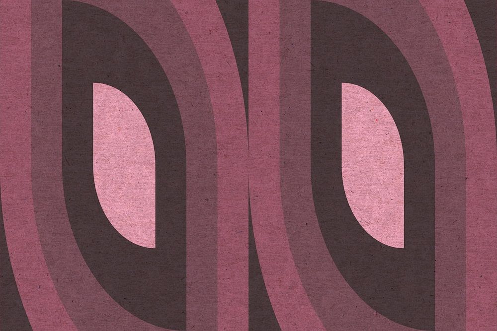 Collage aus geometrischen Formen und Texturen in Retro-Farben.