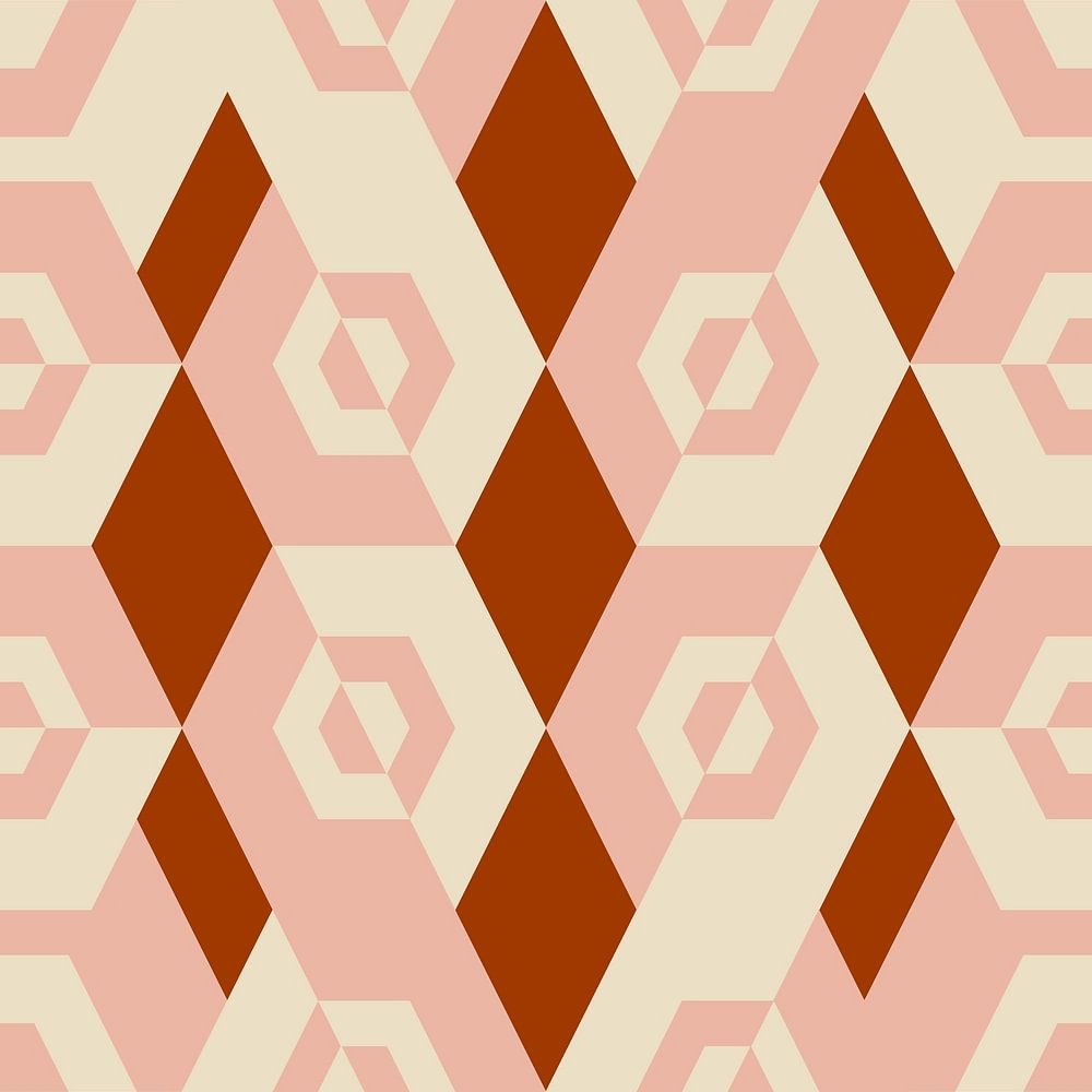 Modernes abstraktes geometrisches Muster mit sechseckigen Formen in einer retro-inspirierten Farbpalette.