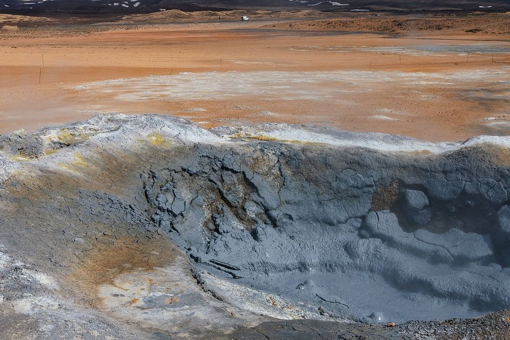 Námaskarð / Hverir ist ein geothermisches Gebiet im Norden Islands, in dem viele dampfende heiße Quellen und kochende Schlammpools zu sehen sind.