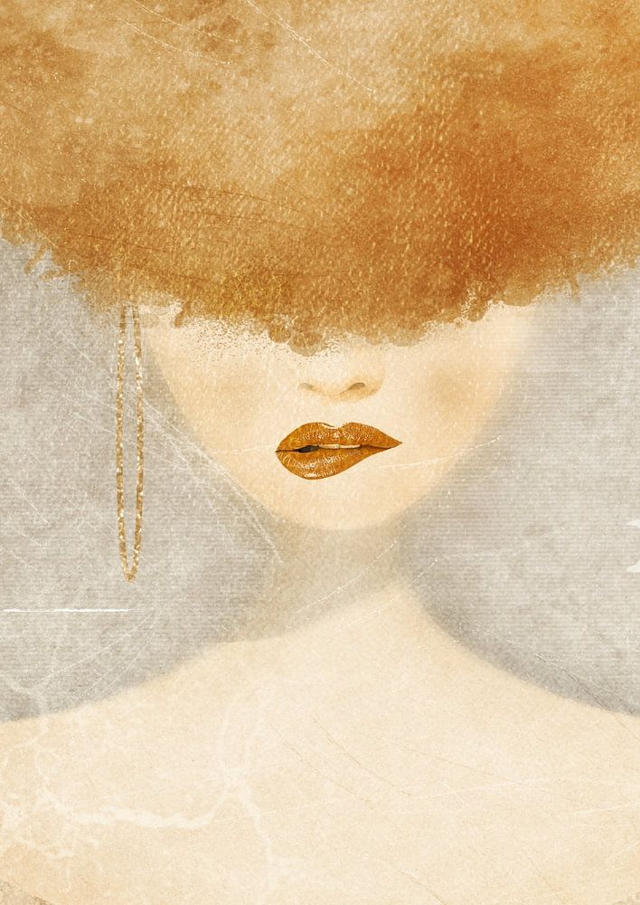 Surrealistisches Porträt mit einer Zuckerwatte-Frisur in Karamellfarbe.
