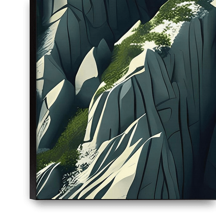 Bestelle dieses Landschafts-Wandbild Gipfel aus grünem Stein von Vythryd Arts als Reproduktion auf Leinwand, Alu-Dibond, als Poster, Fototapete oder Acrylglasbild.