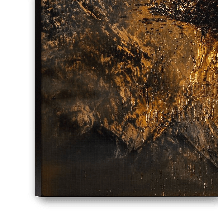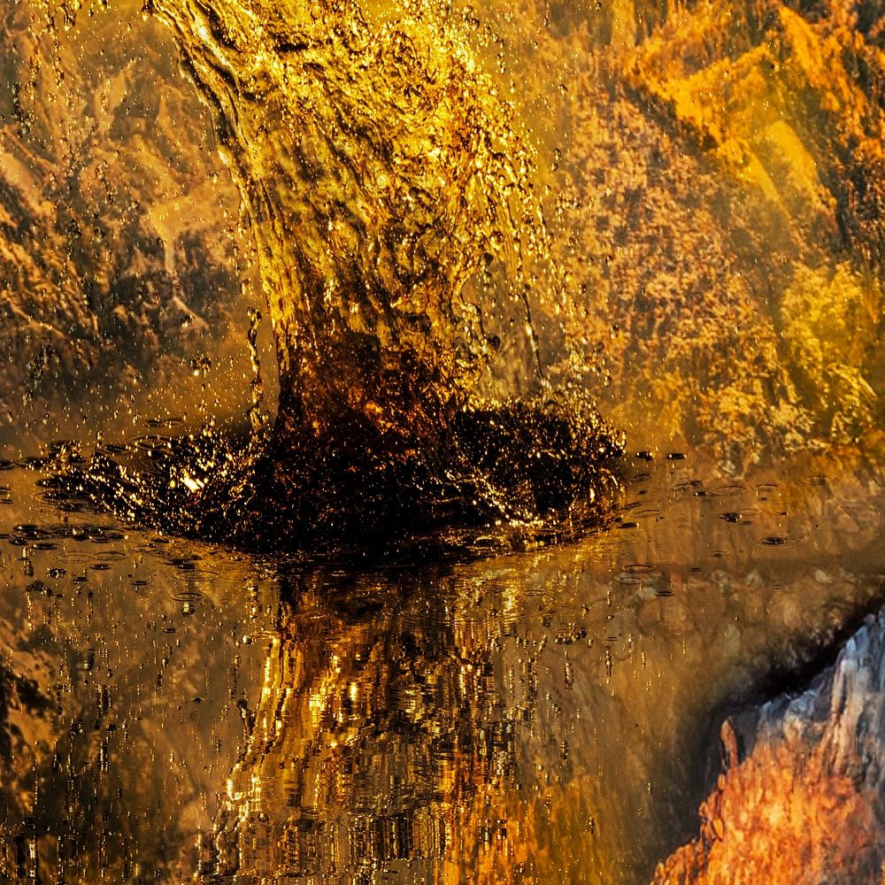 Dieses abstrakte Foto macht mit seinen intensiven Gold- und Kupfertönen, die eine fast vulkanische Energie ausstrahlen, einen starken Eindruck.