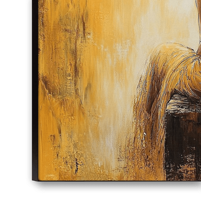 Details: Frauenbild, moderne Kunst, figurativ, Textur, Einsamkeit, Kontemplation, goldener Hintergrund, Weiblichkeit, Stille, Emotion