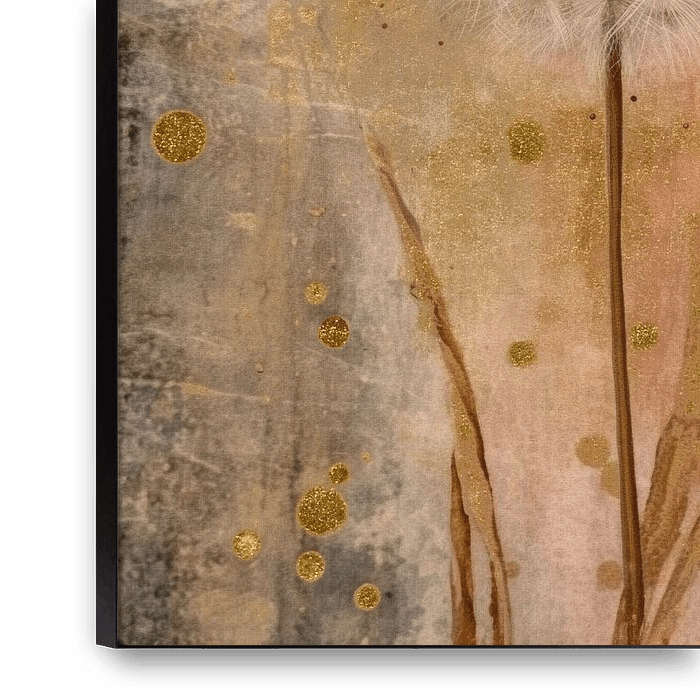 Bestelle dieses Blumen-Wandbild Gold und Pink Rustikale Löwenzahn-Abstracts von Floral Abstractions als Reproduktion auf Leinwand, Alu-Dibond, als Poster, Fototapete oder Acrylglasbild.
