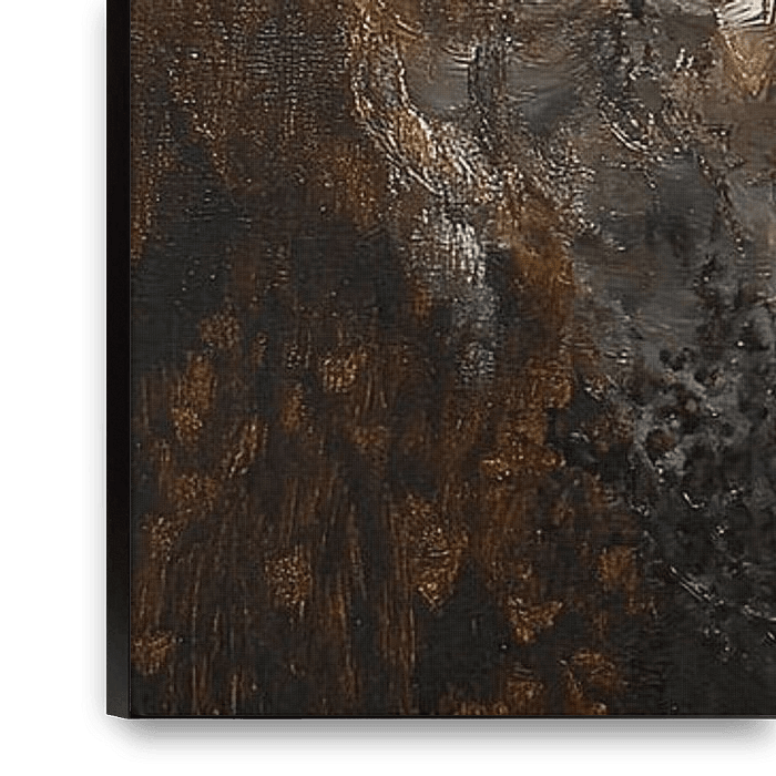 Goldene Wirbel - Dieses abstrakte Gemälde zeigt eine dynamische Komposition aus wellenförmigen Formen und Wirbeln in satten Gold- und Brauntönen, die von Texturen akzentuiert werden, die das Licht einzufangen und zu reflektieren scheinen.