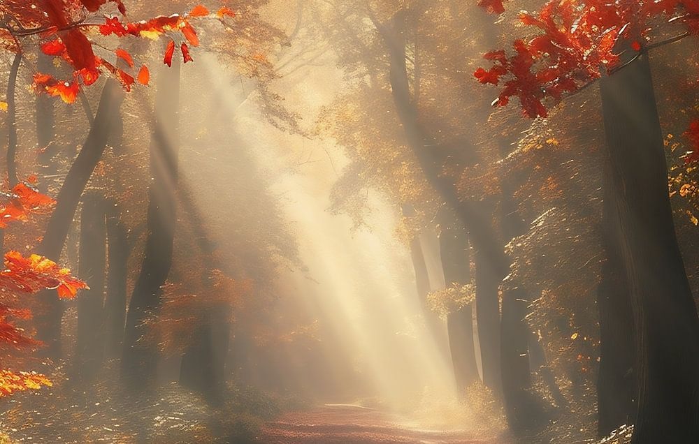 Goldener Sonnenaufgang im Laubwald