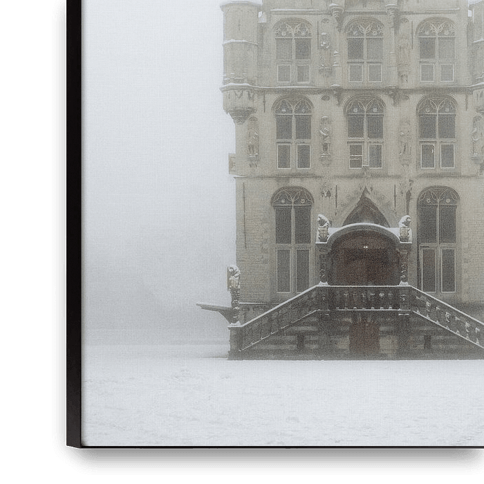 Das Rathaus von Gouda, wie die meisten Goudaer es noch nie gesehen haben. Im Nebel und im Schnee. Das besondere Rathaus von Gouda ist wie ein Märchen dargestellt.