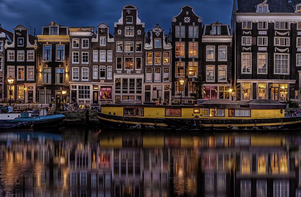 Abendfoto vom Singel-Kanal in Amsterdam