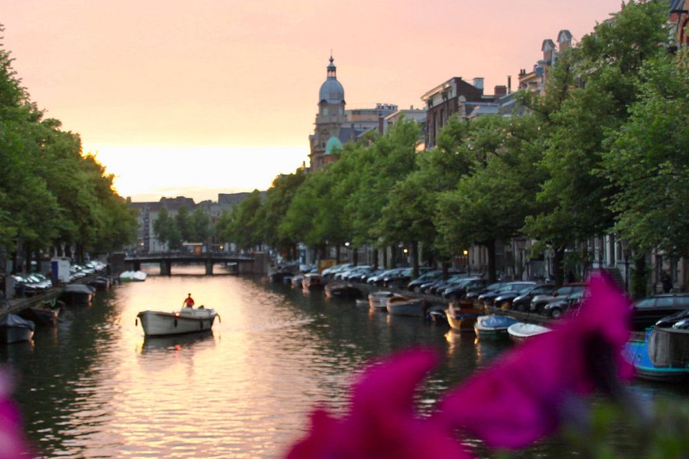 Amsterdam und seine Grachten bei Sonnenuntergang sorgen dafür, dass schöne Bilder gemacht werden können