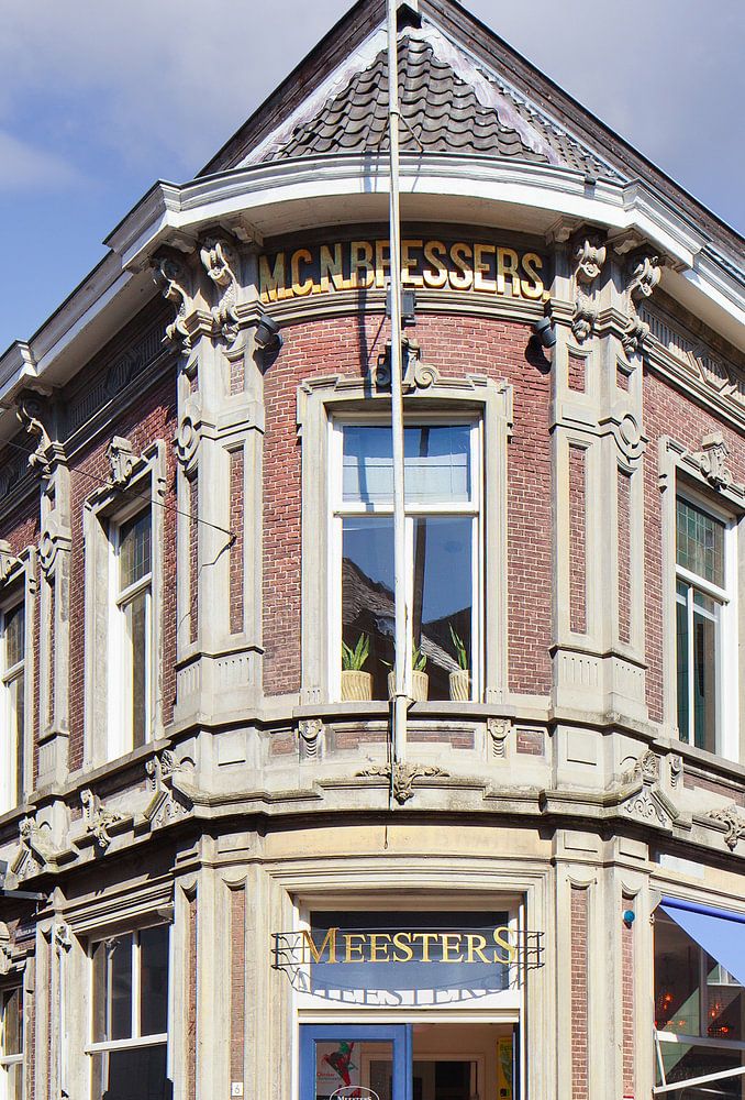 Grand Café Meesters in einem monumentalen Backsteinvilla befindet sich in Tilburg Stadtzentrum an einem sonnigen Tag