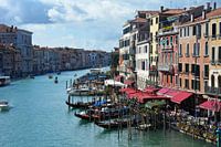Blick auf den großen Kanal von Venedig in Italien von einer hohen Brücke aus gesehen