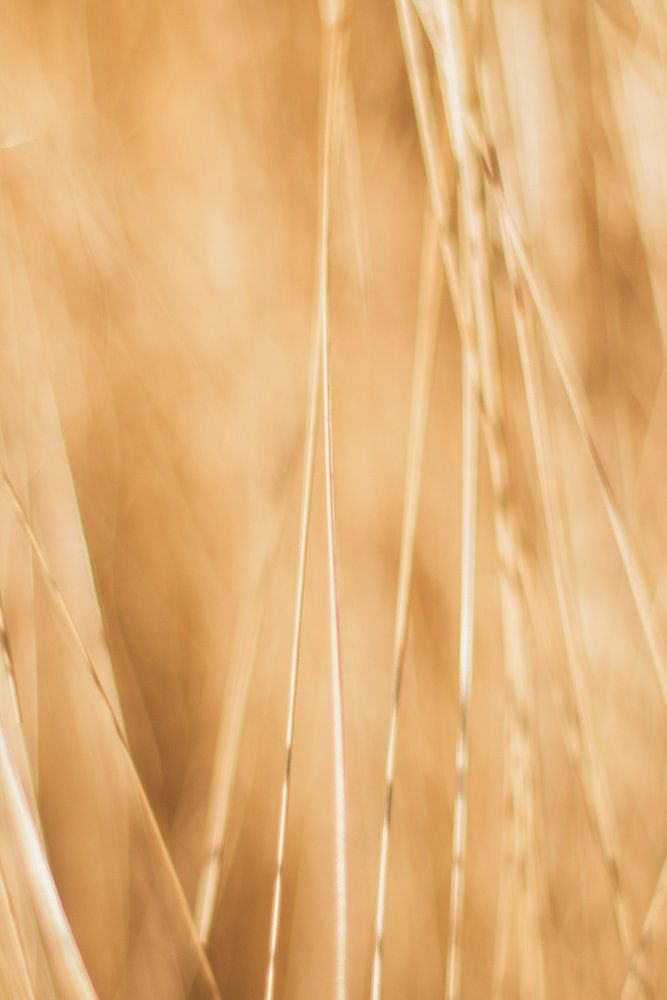 Eine Grasart, die von der Sonne verblüht und verwelkt ist. Die Farben und die Struktur erinnern jetzt an Dünen. Dieses Gras schwankt mit jedem Windhauch, der die Blätter berührt.