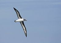 Graukopfalbatros im Flug über dem südlichen Ozean.