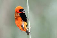 Dieser wunderschön gefärbte Webervogel posierte in einem Schilfgürtel in Rietvlei, Südafrika. Grenadierwebervögel gehören zu den auffälligsten Vögeln Südafrikas und sind in allen Feuchtgebieten mit Schilf zu finden