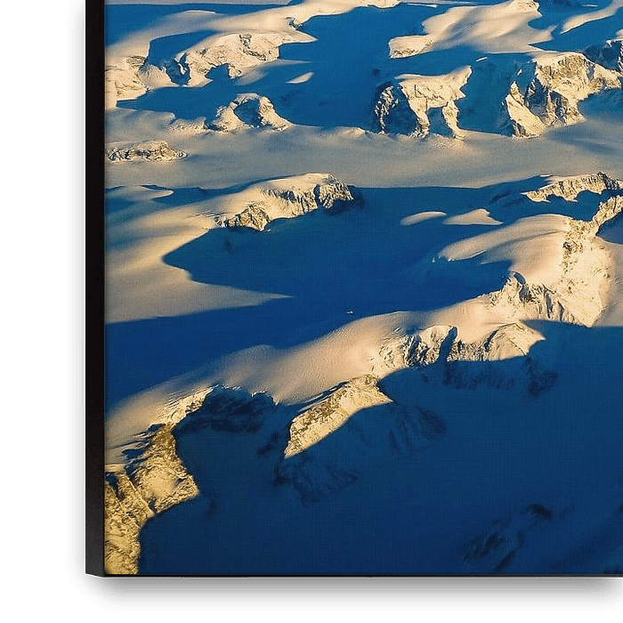 Die tiefstehende Sonne sorgt für lange Schatten an den Fjorden von Grönlands Ostküste