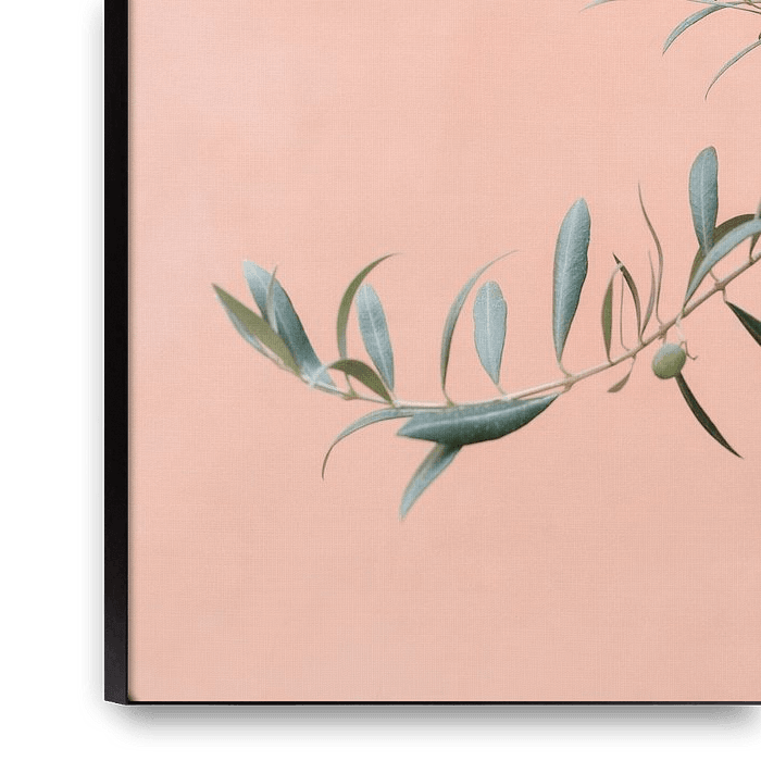Ich habe diese Olivenzweige in Rom, der Hauptstadt Italiens, fotografiert. Ich liebe die grüne Farbe dieses Olivenbaums vor der korallenfarbenen Wand. Dieser Druck passt gut in eine botanische Einrichtung.