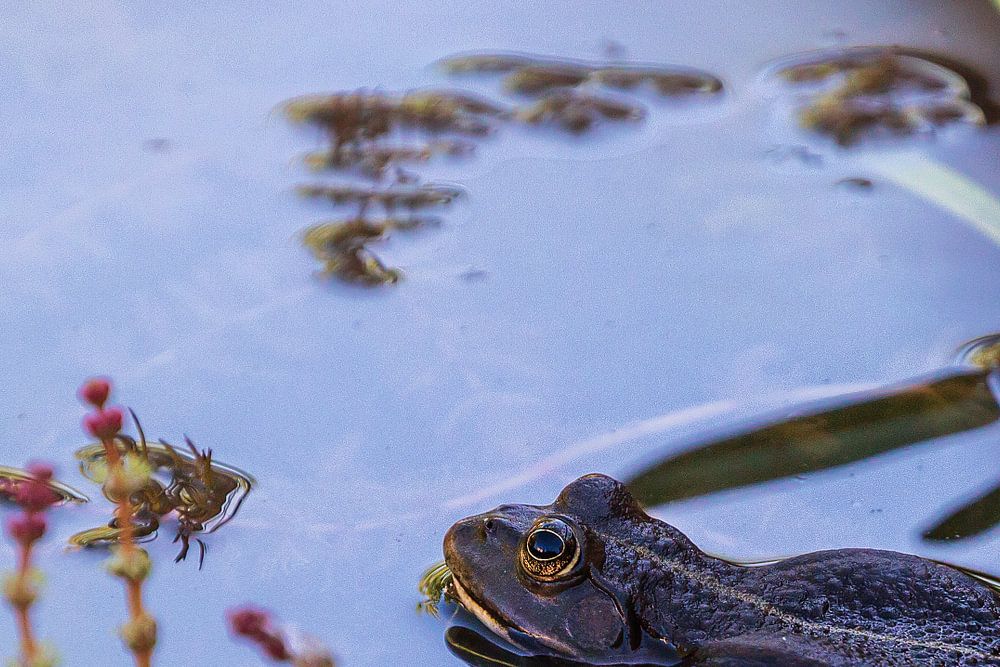 Grüner Frosch (Pelophylax) in einem Teich in den Niederlanden im Frühling