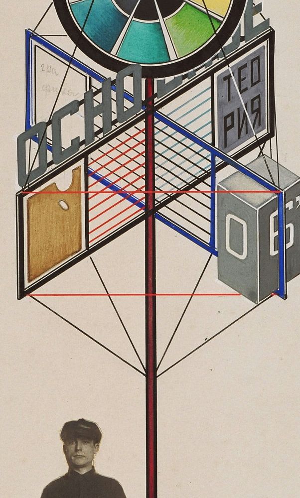 Osnovnoje. Entwurf für einen Stand am Eingang einer Ausstellung mit Werken von Studenten des VKhUTEMAS-Grundkurses (Entwurfsprojekt für das Emblem des VKhUTEMAS-Grundkurses)