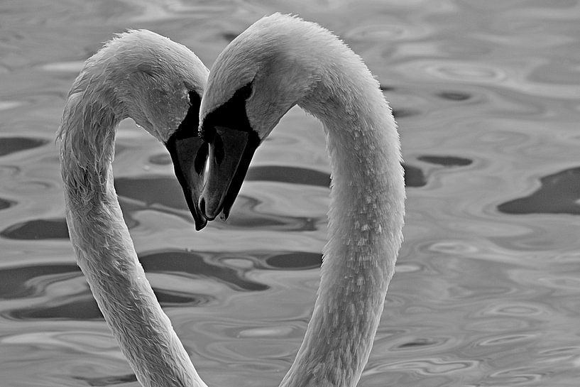 Zwei weiße Schwäne bilden ein Herz