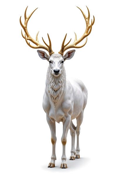 In stiller Erhabenheit tritt der Hirsch aus dem grenzenlosen Weiß hervor, als wäre er aus reiner Klarheit und Licht geformt. Sein kraftvoller, zugleich eleganter Körper wirkt wie eine perfekte Balance aus Stärke und Anmut, während das helle Fell jede Nuance des Lichts sanft reflektiert. Das imposante Geweih erhebt sich wie eine Krone…