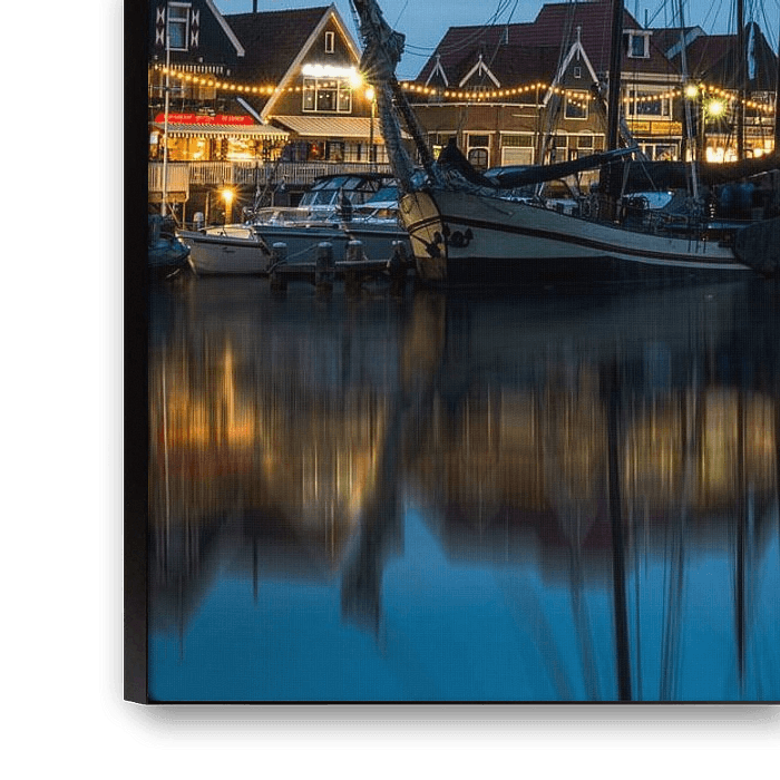 Hafen von Volendam. Szenen vom Deich am Abend. Volendam ist ein Dorf in der Gemeinde Edam-Volendam in der niederländischen Provinz Nordholland.